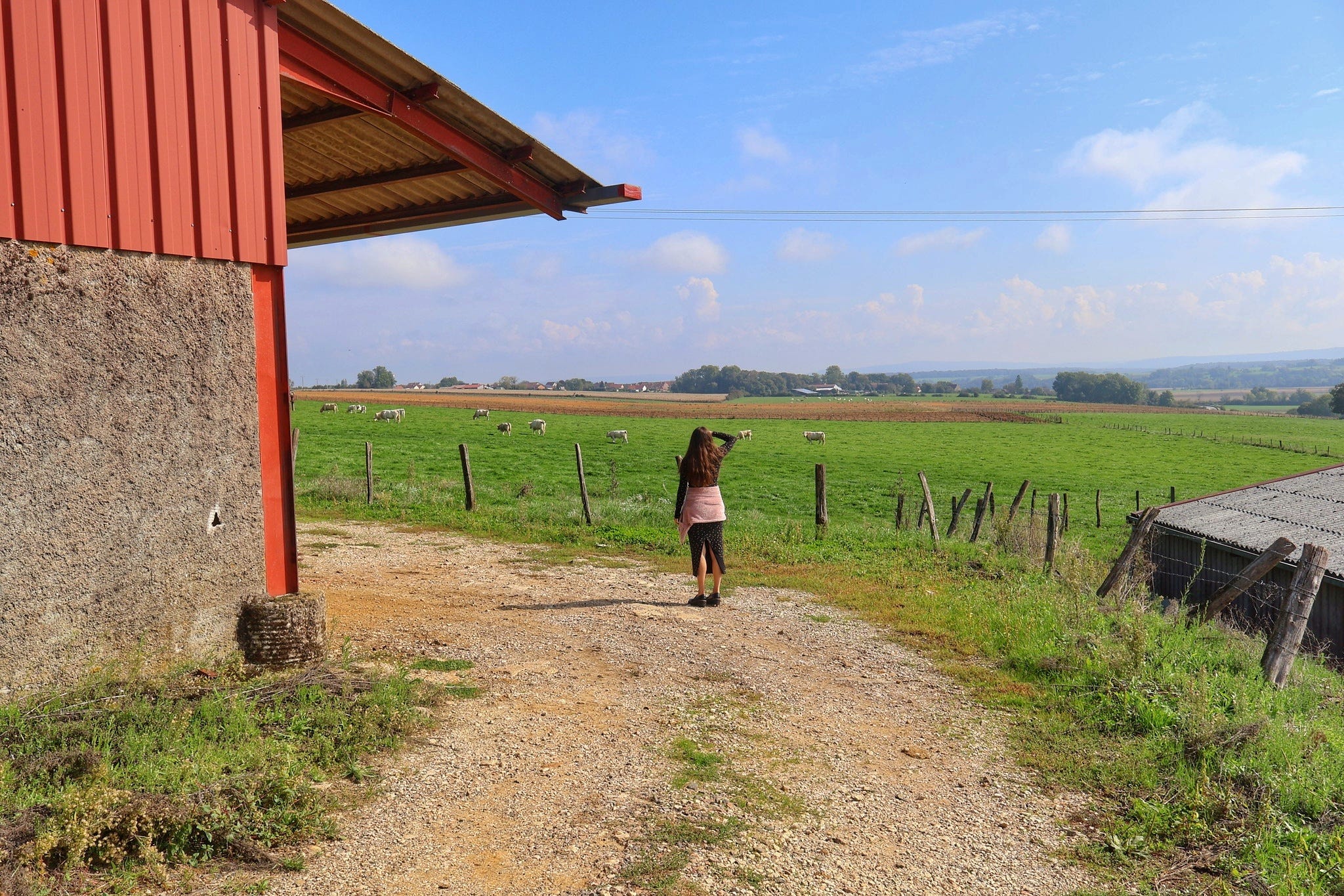 Elle m’explique que le propriétaire actuel n’utilise pas le corps de ferme, juste les champs, pour son élevage bovin.